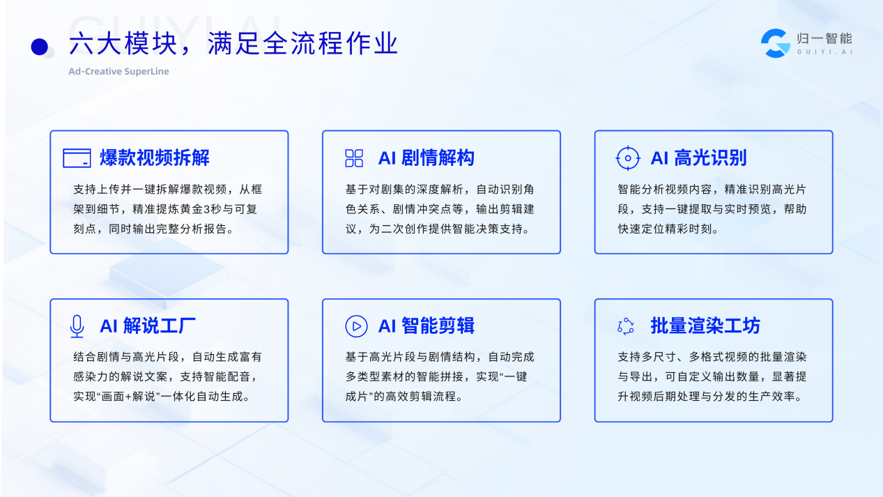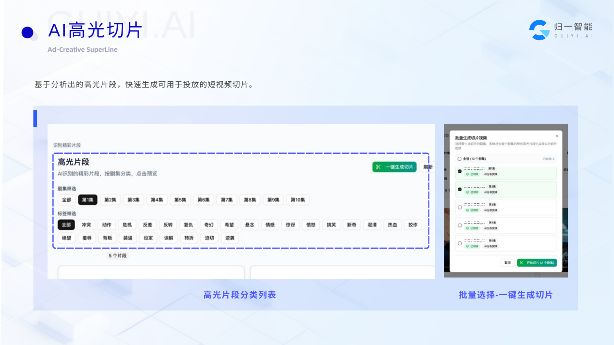 依托歸一智能「投流素材超級產線」,無需額外組建剪輯團隊,即可完成從高光篩選、批量剪輯、BGM適配,到字幕校準、畫面尺寸統(tǒng)一的漫劇出海投流素材創(chuàng)作全流程,快速輸出可直接上線的引流素材,降低人力與時間成本。