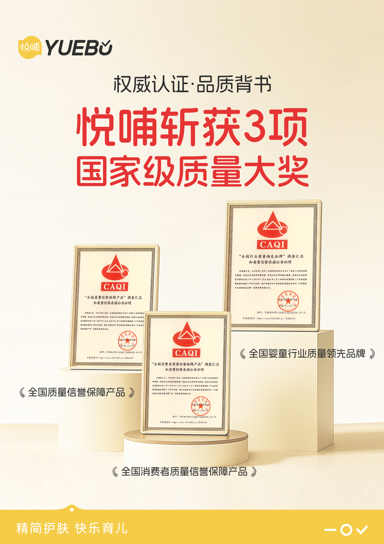 在剛剛過去的2026年3·15國際消費(fèi)者權(quán)益日期間,嬰童護(hù)膚品牌悅哺憑借產(chǎn)品品質(zhì)與誠信經(jīng)營理念,經(jīng)相關(guān)審核與評定,榮獲中國質(zhì)量檢驗(yàn)協(xié)會頒發(fā)的三項重量級榮譽(yù):“全國嬰童行業(yè)質(zhì)量領(lǐng)先品牌”、“全國消費(fèi)者質(zhì)量信譽(yù)保障產(chǎn)品”及“全國質(zhì)量信譽(yù)保障產(chǎn)品”。這不僅標(biāo)志著悅哺在嬰童護(hù)膚領(lǐng)域的質(zhì)量基石獲得行業(yè)層面的高度認(rèn)可,更彰顯了其積極響應(yīng)中國質(zhì)量檢驗(yàn)協(xié)會“產(chǎn)品和服務(wù)質(zhì)量誠信承諾”主題活動、主動承擔(dān)質(zhì)量主體責(zé)任的品牌擔(dān)當(dāng)。