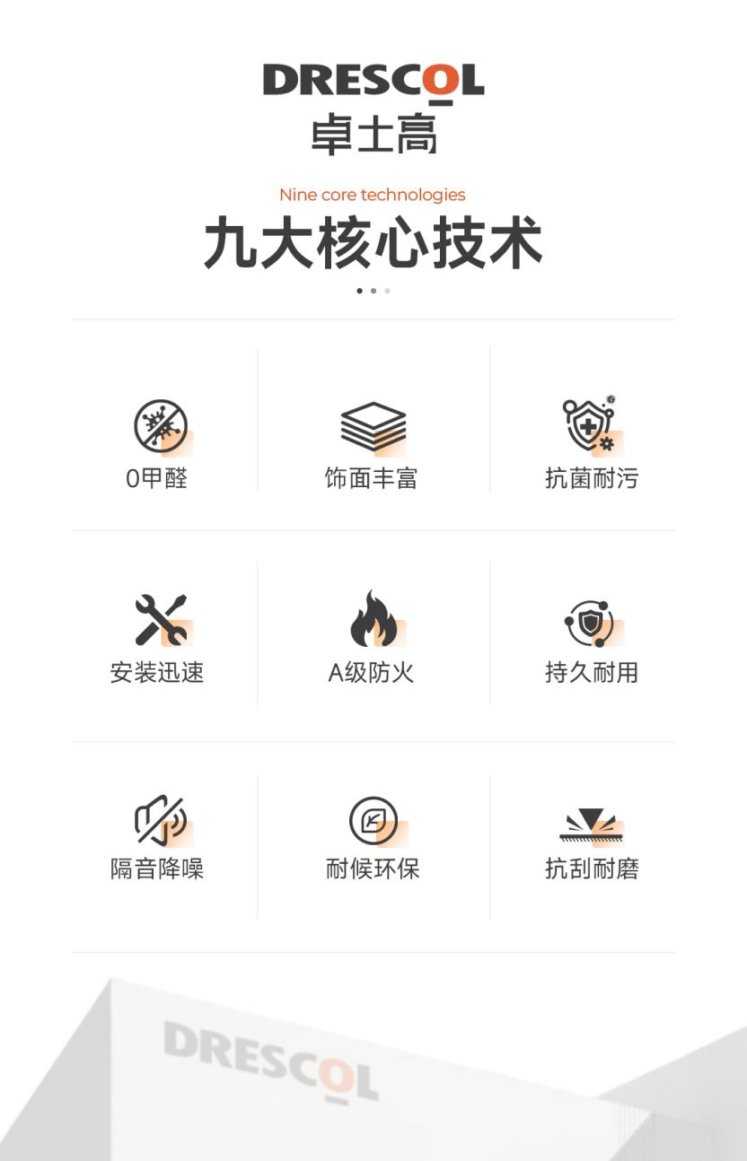 產(chǎn)品性能創(chuàng)新是國際一線品牌保持領(lǐng)先的核心動力。DRESCOL卓士高整合九大核心技術(shù),覆蓋A級防火、0甲醛、抗菌耐污、隔音降噪等關(guān)鍵性能,產(chǎn)品同步通過國際、歐盟等多重環(huán)保標(biāo)準(zhǔn)檢測。品牌持續(xù)優(yōu)化芯材與面板工藝,將芳綸蜂窩、無機礦物質(zhì)等高性能材料融入產(chǎn)品,讓復(fù)合板在強度、耐熱、耐腐等性能上超越傳統(tǒng)金屬建筑材料。