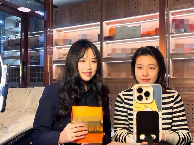 (圖為職工與零售戶直播宣傳雪茄煙)
