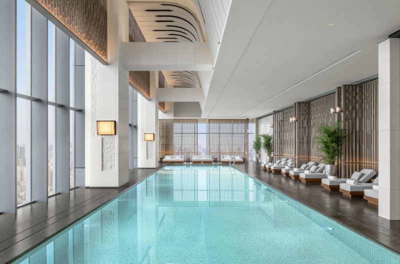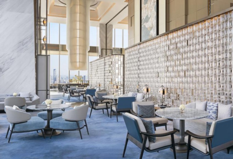 酒店設(shè)有204間客房與套房,均位于48層及以上,全景視野可盡覽長江壯闊與城市天際,與綜合體超甲級寫字樓的云端辦公視野形成呼應(yīng)??头恳浴霸贫司铀睘槔砟?,藍白銀色主調(diào)搭配櫻花燈飾、紙雕藝術(shù)等楚韻細節(jié),盡顯雅致格調(diào);270平方米套房以私邸尊享格調(diào),為賓客群提供寧靜而尊崇的居停體驗;行政樓層賓客可專享56曾行政酒廊,每日五次精致餐飲禮遇,為商務(wù)洽談、圈層交流提供高端場景。此外,麗思兒童項目通過趣味互動,引領(lǐng)家庭客群領(lǐng)略武漢文化底蘊,讓服務(wù)覆蓋全齡層。