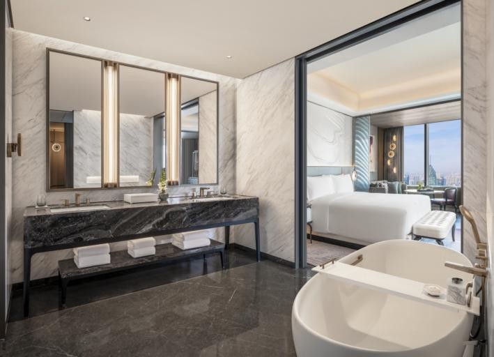 作為武漢越秀國際金融中心的核心高端配套,武漢麗思卡爾頓酒店踞守項目46至59層,與綜合體超甲級寫字樓、高端商業(yè)實現(xiàn)空間互補、體驗聯(lián)動,以330米的云端高度俯瞰兩江交匯,將荊楚千年文脈與麗思卡爾頓傳奇服務(wù)相融,為全球賓客、綜合體辦公及消費客群,打造兼具本土底蘊與國際水準的全場景沉浸式體驗,實現(xiàn)“辦公、消費、旅居、社交”的無縫銜接。