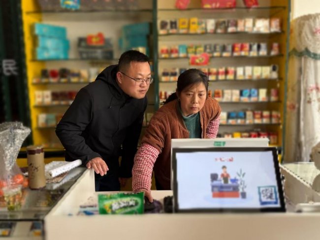 (圖為營銷人員指導(dǎo)零售戶使用終端管理系統(tǒng))
