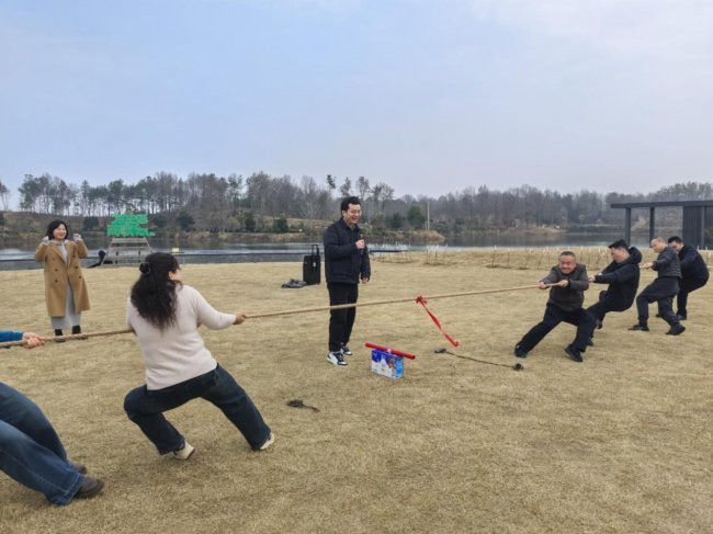 簡單的開場后,迎來了刺激又有趣的拔河比賽。女職工們一組,作為志愿者參加的男職工們一組,分成兩隊,大家緊緊握住繩子,眼神中透露出堅定和團結(jié)?!耙欢?,拉!一二,拉!”在響亮的口號聲中,大家齊心協(xié)力,為了團隊的勝利全力以赴。旁邊的啦啦隊也不甘示弱,加油聲、吶喊聲此起彼伏。