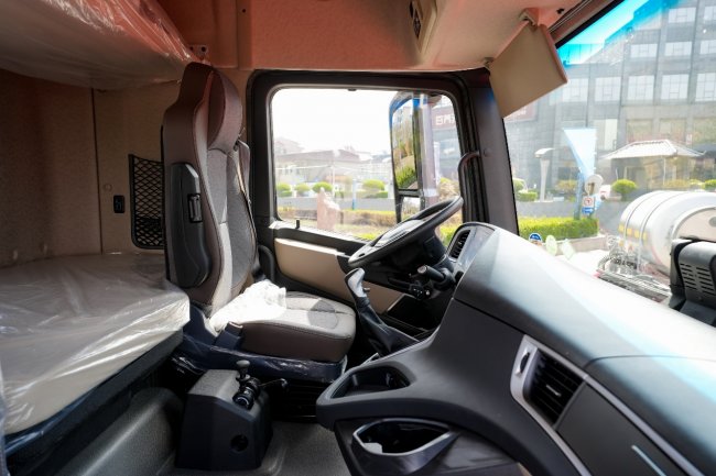 駕駛室內采用150mm低鼓包設計,中部站立高度達1850mm,讓駕駛員在車內活動自如。880mm超寬臥鋪,為長途奔波的駕駛員提供舒適的休息空間。環(huán)繞式儀表臺讓各類按鍵觸手可及,換擋桿集成優(yōu)化至儀表臺,徹底釋放主副駕之間的通道空間。7寸液晶儀表搭配可選裝的10寸多媒體大屏(集成四方位影像),行車信息一目了然。標配氣囊座椅可選通風加熱及三級氣動腰托功能,無論酷暑寒冬都能提供舒適的乘坐體驗。