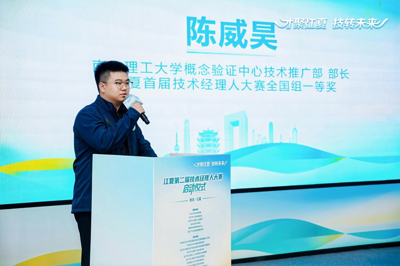 首屆江夏技術經理人大賽一等獎獲得者陳威昊現場分享成長經歷,并宣布推進南京理工大學成果轉化中心江夏分中心落地,持續(xù)將高校優(yōu)質科研資源導入江夏、服務湖北。