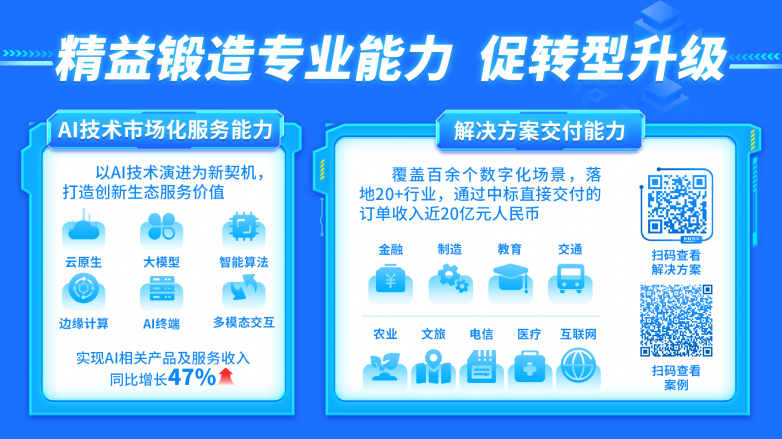 解決方案交付能力覆蓋百余個(gè)數(shù)字化場(chǎng)景,中標(biāo)直接交付訂單收入近20億元人民幣;