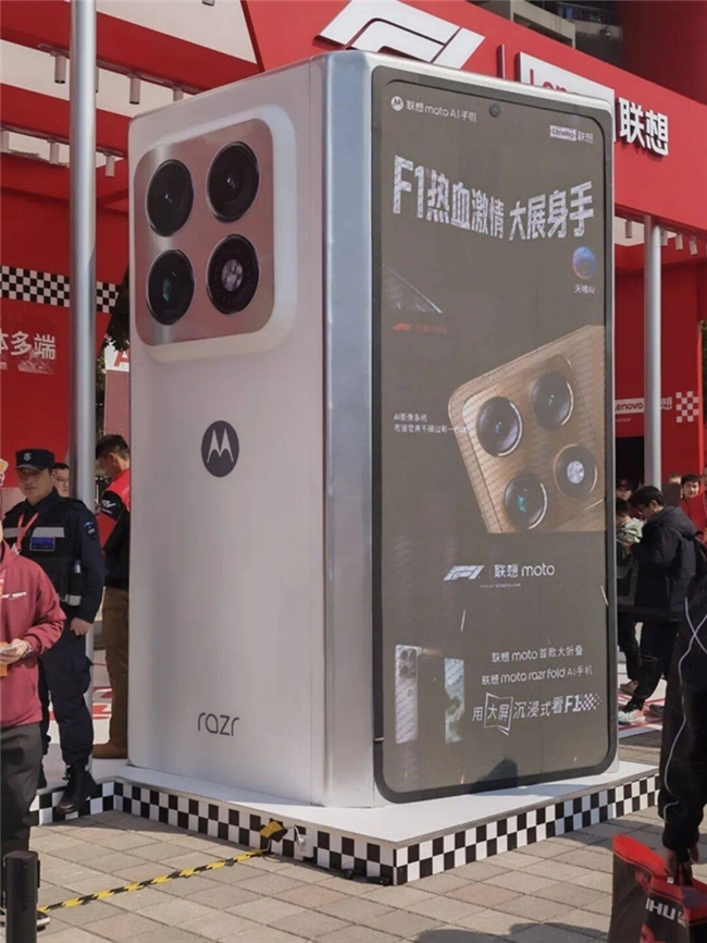 在本次F1中國大獎(jiǎng)賽的賽道之外,驍龍的身影同樣清晰可見。作為F1全球智能手機(jī)合作伙伴,聯(lián)想moto在現(xiàn)場(chǎng)搭建了一座醒目的紅色展區(qū),成為車迷們打卡的熱門地標(biāo)。展區(qū)的主角,是剛剛在2026年世界移動(dòng)通信大會(huì)(MWC)上全球亮相、如今首次在國內(nèi)公開展出的moto razr fold折疊屏手機(jī)。