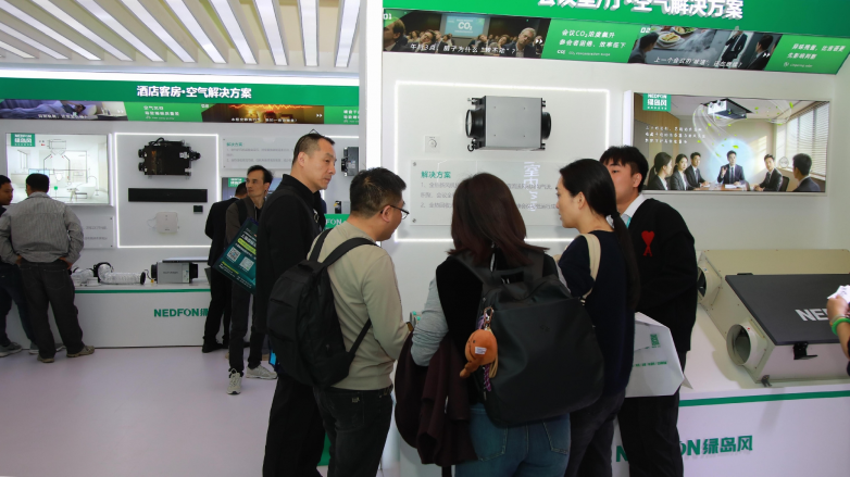 綠島風(fēng)各個(gè)場景展區(qū)吸引大量參觀者駐足。吊頂式熱回收新風(fēng)機(jī)作為明星產(chǎn)品之一,可高效匹配酒店大堂、會(huì)議廳及客房等場景的通風(fēng)換氣與能源利用需求,在實(shí)現(xiàn)空氣多重過濾和平衡送風(fēng)的同時(shí),提升整體能源利用效率,實(shí)現(xiàn)節(jié)能性與實(shí)用性的雙重保障。